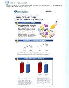 Lampung,- (BN.Net) Hasil Survei Penjualan Eceran (SPE) Juni 2023 menunjukan pertumbuhan positif secara tahunan tercermin dari Indeks Penjualan Riil sebesar 117,81 atau