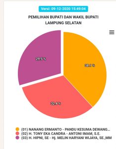 Lampung Selatan,- {BN.Net} Dari hasil penghitungan sementara hasil Pilihan Kepala Daerah Serentak wilayah Kabupaten Lampung Selatan, pasangan Nanang Ermato-Pandu Kesuma unggul dengan
