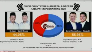 Pesawaran,- {BN.Net} Berdasarkan hasil hitung cepat lembaga survei Rakata Institute, yang melaksanakan cuickcount untuk empat kabupaten kota di provinsi Lampung, yang melaksanakan