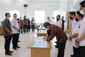 Sekdaprov Fahrizal Saksikasan Penandatanganan Perjanjian Jual Beli Tenaga Listrik PLTS Atap antara PT PLN dengan Sejumlah Instasi Pemprov Lampung.