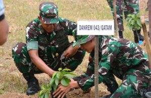 Lampung,- (BN.Net) Dalam rangka menyambut Hari Ulang Tahun Ke-78 Kodam II/Sriwijaya, Korem 043/Gatam menggelar Karya Bhakti menanam pohon penghijauan, bertempat SLB.Dharma Bhakti