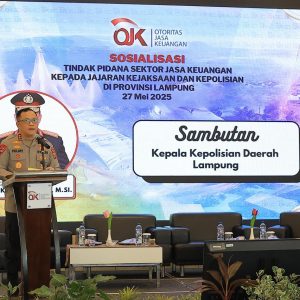Lampung, – (BN.Net) Kapolda Lampung Irjen Pol Helmy Santika menghadiri kegiatan Sosialisasi Tindak Pidana Sektor Jasa Keuangan yang diselenggarakan di Hotel Grand